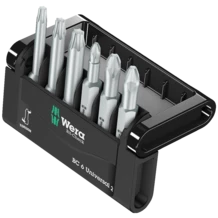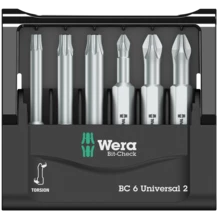 6 embouts Wera de 50 mm de long, clairement ordonnancés dans un espace ultra-réduit à l'intérieur du Bit-Check très pratique. Embouts extra-rigides convenant pour un emploi universel. Sur les embouts Torsion (TZ), les pics de couples sont par ailleurs amortis dans la zone de torsion. L'usure précoce est évitée ; la longévité de l'embout accrue.