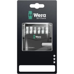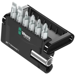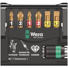 Embouts à pointe garnie de minuscules particules diamantées. Celles-ci permettent un positionnement sûr dans la vis, réduisent la force de compression nécessaire et diminuent le risque de ripage. Embouts à zone BiTorsion, dans laquelle est rejetée l'énergie cinétique lors des pics de charge. D'où un gain significatif de longévité du produit. Équipé de la technologie Rapidaptor, permettant l'admission des embouts sans même avoir à actionner la douille. Leur retrait s'effectue par simple poussée vers l'avant - pour un échange éclair des embouts, même d'une seule main. Possibilité d'utilisation sur visseuse ou porte-mèches de perceuse électronique. Le Bit-Check multicomposants convainc par son faible poids et son encombrement minimal. Le matériau souple composant la partie inférieure du Bit-Check permet de coincer les embouts en toute sécurité dans leur rangement, tout en assurant un prélèvement facile. Le profil et la taille des embouts sont faciles à distinguer grâce au repéreur d'outils Take it easy d'identification des tailles par couleur.