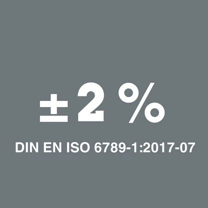 La précision est de ±2 % selon la DIN EN ISO 6789-1:2017-07.