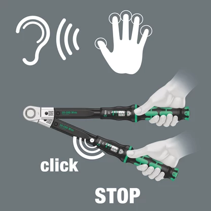 Le mécanisme produit un déclic audible et perceptible dès que l’on atteint la valeur de couple réglée.
