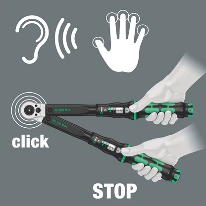 Le mécanisme produit un déclic audible et perceptible dès que l’on atteint la valeur de couple réglée.