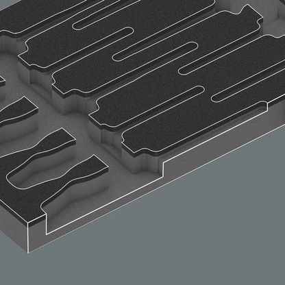 Insert en mousse durable ; bicolore pour repérer rapidement les pièces manquantes ; compatible avec la servante d'atelier Tool Rebel ; équipé de 14 tournevis Wera Kraftform VDE et 2 agrippe-vis.