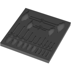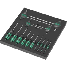 Insert en mousse durable ; bicolore pour repérer rapidement les pièces manquantes ; compatible avec la servante d'atelier Tool Rebel ; équipé de 14 tournevis Wera TORX® (atelier, Kraftform Micro et manche en T) avec fonction de retenue pour vis TORX®.