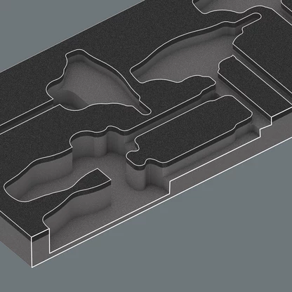 Grâce à la précision des découpes, les outils sont bien maintenus dans la mousse, mais restent faciles à saisir. La disposition bien pensée des outils permet un rangement compact et un accès rapide à l’outil voulu.