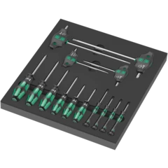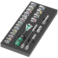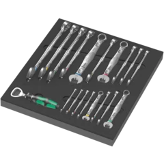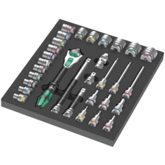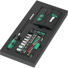 Insert en mousse durable ; bicolore pour repérer rapidement les pièces manquantes ; compatible avec la servante d'atelier Tool Rebel ; équipé de 1 cliquet Wera Zyklop Speed 1/4" et 36 accessoires.