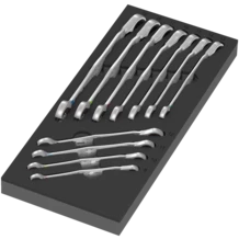 Insert en mousse durable ; bicolore pour repérer rapidement les pièces manquantes ; compatible avec la servante d'atelier Tool Rebel. Comprend 11 clés mixtes à cliquet avec levier d'inversion 6001 Joker Switch.