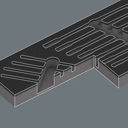 Grâce à la précision des découpes, les outils sont bien maintenus dans la mousse, mais restent faciles à saisir. La disposition bien pensée des outils permet un rangement compact et un accès rapide à l’outil voulu.