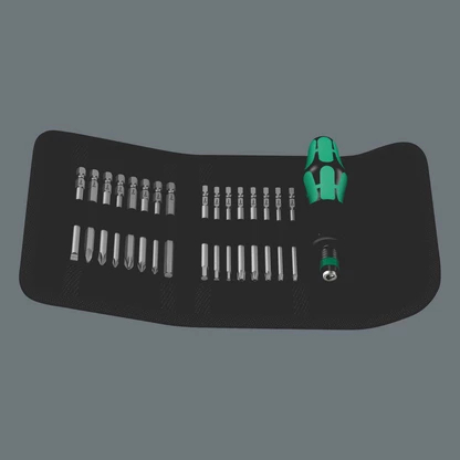 • Kraftform Kompakt 60 : pochette pliable avec embouts de 89 mm de long et porte-embouts 816 R avec mandrin à serrage rapide Rapidaptor et manche Kraftform multicomposant pour travailler sans se fatiguer
