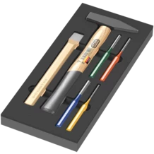 Insert en mousse durable ; bicolore pour repérer rapidement les pièces manquantes ; compatible avec la servante d'atelier Tool Rebel ; équipé de 1 marteau rivoir PICARD®, 4 chasse-goupilles RENNSTEIG et 1 burin plat RENNSTEIG.