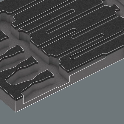 1 insert en mousse durable, sans outils ; bicolore pour repérer rapidement les pièces manquantes ; largeur x hauteur x profondeur : 344 x 30 x 392 mm ; insert en mousse de rechange pour article Wera 9710 ; compatible avec la servante d'atelier Tool Rebel.