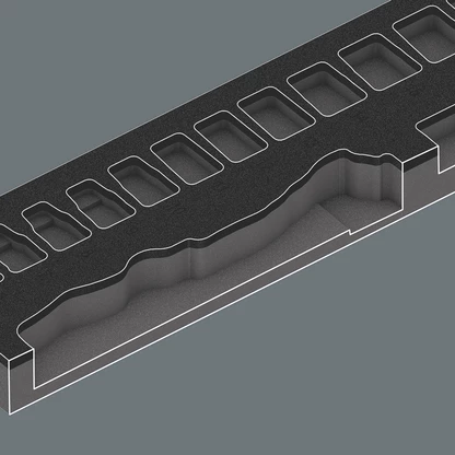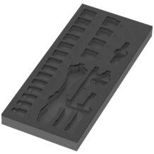 1 insert en mousse durable, sans outils ; bicolore pour repérer rapidement les pièces manquantes ; largeur x hauteur x profondeur : 172 x 30 x 392 mm ; insert en mousse de rechange pour article Wera 9721 ; compatible avec la servante d'atelier Tool Rebel.