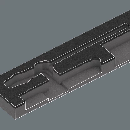 1 insert en mousse durable, sans outils ; bicolore pour repérer rapidement les pièces manquantes ; largeur x hauteur x profondeur : 172 x 30 x 392 mm ; insert en mousse de rechange pour article Wera 9750 ; compatible avec la servante d'atelier Tool Rebel.