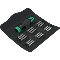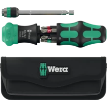 Un ensemble polyvalent : cliquet intégré au manche, lame télescopique escamotable dans le manche (pouvant aussi être sortie et utilisée comme porte-embouts dans la visseuse) et un magasin d’embouts intégré au manche. La technologie Rapidaptor permet le changement ultrarapide des embouts et un bon guidage par la bague de rotation rapide en mode mécanique.