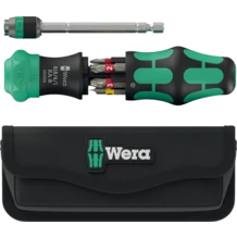 Manche Kraftform avec magasin intégré au manche pour 6 embouts ; avec lame télescopique ; pour embouts 1/4". Le cliquet à fine denture intégré dans le manche permet de travailler rapidement. L'inversion du sens de vissage est intuitive : si on tourne la bague vers la droite, le vissage s'effectue vers la droite. Si on tourne la bague vers la gauche, le vissage s'effectue vers la gauche. Le mécanisme de cliquet peut être désactivé en position 0 pour les travaux de précision. La lame télescopique escamotable dans le manche, avec mandrin à serrage rapide Rapidaptor, permet le vissage manuel rapide même dans les endroits exigus lorsque la lame est rétractée. Par simple pression sur la douille de fermeture, la lame sort du manche et l'outil peut alors être utilisé comme un tournevis à part entière. La lame télescopique peut être retirée et insérée comme adaptateur machine ou remise dans sa position initiale. La technologie Rapidaptor permet de changer rapidement d'embout. Avec 6 embouts BiTorsion pour une longévité accrue, extra-rigides, à usage universel ; logés dans le magasin intégré dans le manche. Le puissant aimant permanent dans l'admission d'embout 1/4" permet un positionnement sûr de l'embout. Le manche bicomposant Kraftform, qui combine les zones dures et tendres, permet une prise en main sûre et un travail précis. Avec étui robuste.