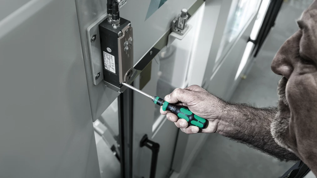 Jeu de tournevis à cliquet, 15 pièces. Porte-embouts avec fonction cliquet intuitive. Le cliquet à fine denture (36 dents/angle de reprise de 10°) intégré au manche simplifie et accélère le vissage. Plus besoin de désengager et repositionner l'outil. La rotation rapide est aussi possible. Le mécanisme de cliquet entièrement intégré dans le manche rend l'outil très pratique et le travail agréable. Inversion ergonomique à droite/gauche/en position 0. Manche Kraftform Plus favorisant l'ergonomie au travail et empêchant la formation d'ampoules et de callosités. Porte-embouts magnétique pour embouts à emmanchement hexagonal 1/4" selon DIN ISO 1173-C 6,3 et E 6,3 (ISO 1173). Le mandrin à serrage rapide Rapidaptor permet le changement ultrarapide des embouts sans outil auxiliaire. Le puissant aimant permanent permet un maintien des embouts à toute épreuve. 13 embouts extra-rigides à usage universel (Phillips et Pozidriv, TORX®, fente et six pans creux), 89 mm de long ; nickelage chimique.
