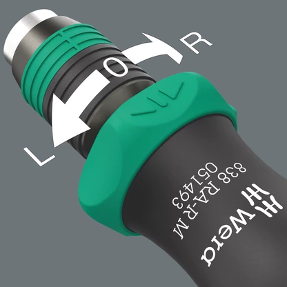 - Porte-embouts avec mandrin à serrage rapide Rapidaptor compatible avec les embouts à emmanchement hexagonal 1/4" selon DIN ISO 1173-C 6,3 et E 6,3 et des séries Wera 1 et 4