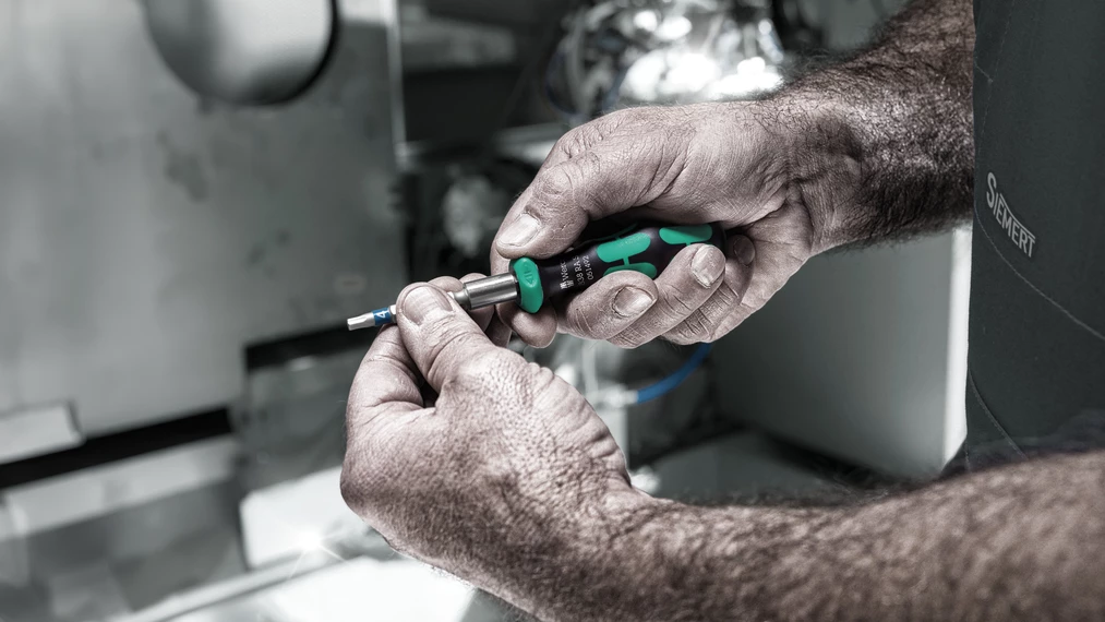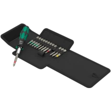 Jeu de tournevis à cliquet, 14 pièces. Porte-embouts avec fonction cliquet intuitive. La rotation rapide accélère le travail. Le mécanisme de cliquet entièrement intégré dans le manche rend l'outil très pratique et le travail aisé. Inversion ergonomique à droite/gauche/en position 0. Manche Kraftform Plus favorisant l'ergonomie au travail et empêchant la formation d'ampoules et de callosités. Porte-embouts magnétique pour embouts à emmanchement hexagonal 1/4". 13 embouts extra-rigides à usage universel (Phillips et Pozidriv, TORX®, six pans creux et fente), 50 mm de long ; nickelage chimique, avec repéreur d'outils Take it easy : avec code couleur en fonction des pointes et indication de la taille pour trouver facilement l'embout nécessaire.