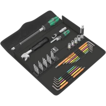 Jeu compact d'outils de vissage Wera comprenant les 36 outils les plus importants pour le montage de fenêtres.