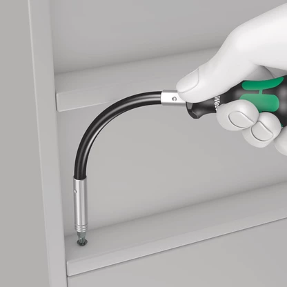 Le tournevis 393 S permet aussi de visser dans les angles. La lame flexible peut accéder aux vis de serrage mal positionnées. C’est l’outil idéal pour les vis difficiles d’accès.