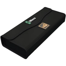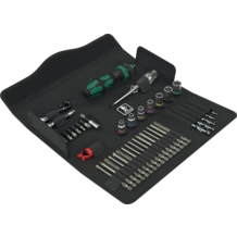 Set d'outillage compact, contenant les 41 principaux outils de vissage pour la menuiserie ; avec le robuste cliquet Zyklop Mini y compris rallonge et adaptateur pour douilles ; 8 douilles "main et machine" de 5,5-13 ; 1 tournevis cliquet 816 RA, fine denture pour un faible angle de reprise, bague d'inversion (droite, fixe, gauche), couple maximal de 50 Nm et admission d'embouts équipée de la technologie Rapidaptor ; 1 porte-embouts universel ; 6 embouts de 25 mm de long ; 16 embouts de 89 mm de long ; 5 mèches hélicoïdales à bois de 3-8 mm de diamètre ; 1 agrippe-vis pour retenir les vis ; 1 testeur de phase unipolaire 247 ; housse textile, de robustesse et de longévité remarquables ; positionnable debout, pour un stockage bien ordonné sur l'étagère à outils ; protection accrue des surfaces grâce au matériau extérieur textile ; faible encombrement et poids réduit, pour un net gain de mobilité.