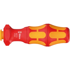 De nombreux utilisateurs souhaiteraient pouvoir effectuer des opérations de vissage plus rapidement sans devoir faire de compromis. Avec un tournevis capable d'une grande précision qui permet aussi un vissage terminal puissant et qui est en outre bien plus rapide qu'un tournevis conventionnel. Un train épicycloïdal pouvant être activé à volonté est la solution : intégré au manche du tournevis, il quadruple la vitesse de vissage sans résistance, de manière entièrement mécanique Une main fixe la partie avant du manche tandis que la deuxième fait tourner la partie arrière. La fonction Turbo peut être activée ou désactivée au choix par simple pression d'un bouton. Il est recommandé de la désactiver pour le réglage de précision et le serrage ou desserrage à un couple élevé. Train en acier robuste et sans maintenance avec un couple maximal de 14 Nm lorsque la fonction Turbo est désactivée. En version VDE, le porte-embouts Kraftform Turbo 827 T i avec ses lames interchangeables VDE Wera contrôlées pièce à pièce selon la norme IEC 60900 permet de travailler rapidement en toute sécurité, y compris sous tension (jusqu'à 1 000 V). Lames interchangeables VDE avec repéreur d'outils Take it easy : code couleur en fonction des empreintes et indication de la taille gravée au laser - pour trouver rapidement et facilement l'outil nécessaire. Dans une trousse de ceinture robuste. L'étui textile présente une zone boucles au dos. La bande scratch autocollante fournie permet de fixer l'étui textile aux composants Wera 2go. Ou bien au mur, à l'étagère ou à la servante d'atelier.