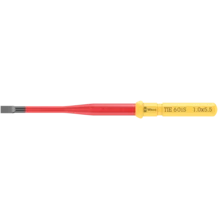 Lame VDE pour système de manche et lames interchangeables Kraftform Kompakt. Changement ultrarapide de la lame sans outil spécial. Outils contrôlés pièce à pièce conformément à la norme IEC 60900. Contrôle pièce à pièce à 10 000 V pour travailler en toute sécurité sous la tension admissible de 1 000 V. Lame à diamètre réduit avec isolation intégrée pour atteindre et actionner les éléments à vis et à ressort profondément encastrés. La pointe Wera Black Point offre un ajustement parfait et une protection anticorrosion accrue. Avec système de repérage d'outils Take it easy : code couleur en fonction des empreintes et indication de la taille gravée au laser. Le dispositif hexagonal antiroulement empêche une échappée involontaire de la lame.