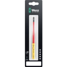 Lame VDE pour système de manche et lames interchangeables Kraftform Kompakt. Changement ultrarapide de la lame sans outil spécial. Outils contrôlés pièce à pièce conformément à la norme IEC 60900. Contrôle pièce à pièce à 10 000 V pour travailler en toute sécurité sous la tension admissible de 1 000 V. Lame à diamètre réduit avec isolation intégrée pour atteindre et actionner les éléments à vis et à ressort profondément encastrés. La pointe Wera Black Point offre un ajustement parfait et une protection anticorrosion accrue. Avec système de repérage d'outils Take it easy : code couleur en fonction des empreintes et indication de la taille gravée au laser. Le dispositif hexagonal antiroulement empêche une échappée involontaire de la lame.
