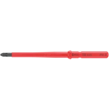 Lame VDE pour système de manche et lames interchangeables Kraftform Kompakt. Changement ultrarapide de la lame sans outil spécial. Outils contrôlés pièce à pièce conformément à la norme IEC 60900. Contrôle pièce à pièce à 10 000 V pour travailler en toute sécurité sous la tension admissible de 1 000 V. La pointe Wera Black Point offre un ajustement parfait et une protection anticorrosion accrue. Avec repéreur d'outils Take it easy : code couleur en fonction des empreintes et indication de la taille gravée au laser. Le dispositif hexagonal antiroulement empêche une échappée involontaire de la lame.
