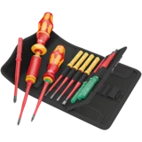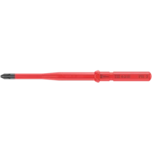 Lame VDE pour système de manche et lames interchangeables Kraftform Kompakt. Changement ultrarapide de la lame sans outil spécial. Outils contrôlés pièce à pièce conformément à la norme IEC 60900. Contrôle pièce à pièce à 10 000 V pour travailler en toute sécurité sous la tension admissible de 1 000 V. Lame à diamètre réduit avec isolation intégrée pour atteindre et actionner les éléments à vis et à ressort profondément encastrés. La pointe Wera Black Point offre un ajustement parfait et une protection anticorrosion accrue. Avec système de repérage d'outils Take it easy : code couleur en fonction des empreintes et indication de la taille gravée au laser. Le dispositif hexagonal antiroulement empêche une échappée involontaire de la lame.