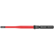 Lame VDE pour système de manche et lames interchangeables Kraftform Kompakt. Empreinte combinée fente et Pozidriv, notamment pour les borniers, boîtes à fusibles, commutateurs, relais. Changement ultrarapide de la lame sans outil spécial. Outils contrôlés pièce à pièce conformément à la norme IEC 60900. Contrôle pièce à pièce à 10 000 V pour travailler en toute sécurité sous la tension admissible de 1 000 V. Lame à diamètre réduit avec isolation intégrée pour atteindre et actionner les éléments à vis et à ressort profondément encastrés. La pointe Wera Black Point offre un ajustement parfait et une protection anticorrosion accrue. Avec système de repérage d'outils Take it easy : code couleur en fonction des empreintes et indication de la taille gravée au laser. Le dispositif hexagonal antiroulement empêche une échappée involontaire de la lame.