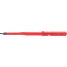 Lame VDE pour système de manche et lames interchangeables Kraftform Kompakt. Changement ultrarapide de la lame sans outil spécial. Outils contrôlés pièce à pièce conformément à la norme IEC 60900. Contrôle pièce à pièce à 10 000 V pour travailler en toute sécurité sous la tension admissible de 1 000 V. Lame à diamètre réduit avec isolation intégrée pour atteindre et actionner les éléments à vis et à ressort profondément encastrés. La pointe Wera Black Point offre un ajustement parfait et une protection anticorrosion accrue. Avec repéreur d'outils Take it easy : code couleur en fonction des empreintes et indication de la taille gravée au laser. Le dispositif hexagonal antiroulement empêche une échappée involontaire de la lame.
