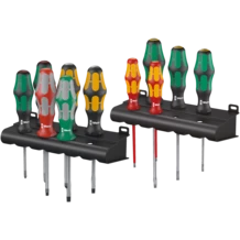 Ensemble polyvalent de 11 tournevis. Manche Kraftform Plus pour un travail agréable et ergonomique, bannissant ampoules et callosités. Zones dures pour une haute vitesse de travail, les zones tendres garantissant quant à elles une transmission de couple élevée. Finition Lasertip sur certains modèles : La pointe des tournevis Wera Lasertip est pourvue d'un grenelage microscopique réalisé au laser. Cette surface rugueuse vient littéralement "mordre" dans la tête de vis. Fini les ripages intempestifs ! Le système de repérage d'outils Take it easy avec identification des profils et des tailles par couleur, pour trouver facilement et rapidement l'outil nécessité.