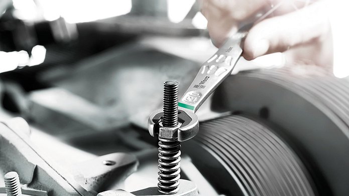 L’ingénieuse morphologie dodécagonale de Joker engendre une liaison géométrique intime avec la vis ou l’écrou – une liaison qui tient ! Et la plaque interchangeable en métal trempé située dans la fourche de Joker « enserre » littéralement la vis de ses pointes extrêmement dures. Deux atouts permettant d’éviter tout dérapage malencontreux, même dans l’hypothèse de couples élevés.