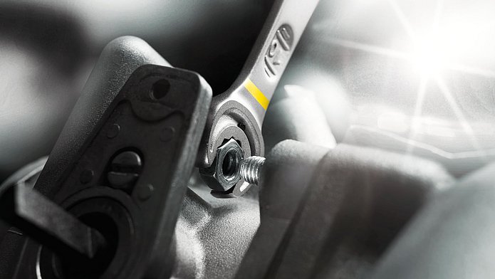 Lorsque nous avons commencé à plancher sur les clés mixtes, nous nous sommes demandé pourquoi il fallait toujours inverser la clé, pourquoi même était-elle contrecoudée, pourquoi perdait-on constamment des vis, pourquoi dérapait-on en se blessant aux doigts de surcroît ? En repensant la fourche, nous avons créé un véritable Joker qui fonctionne même encore si l'on n'a plus aucun autre atout.