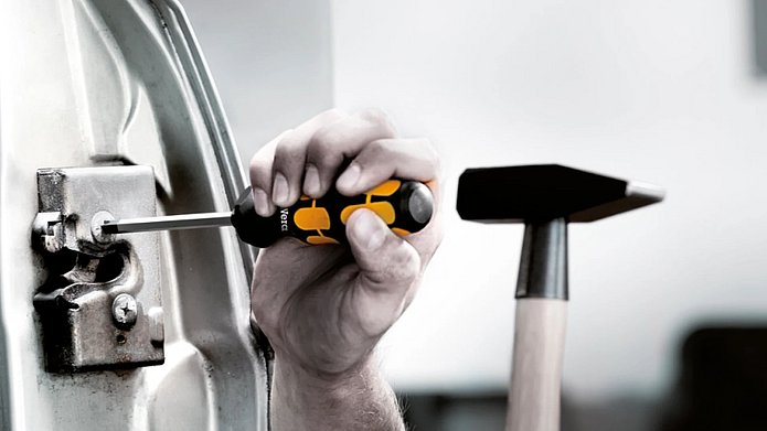 Souvent, les tournevis sont détournés de leur fonction primaire et utilisés comme burins. C‘est dangereux. Si vous ne voulez pas seulement visser, le tournevis-burin est la bonne solution pour vous. Pour visser, buriner, mater et dégager des vis bloquées. Tournevis-burin Wera : le tournevis idéal pour les cas difficiles !