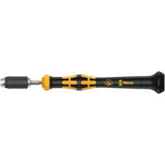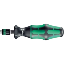 Tournevis dynamométrique Wera. Avec valeur de couple préréglée en usine à la demande du client. Pour toutes les applications qui nécessitent constamment le même couple et une reproductibilité de la précision. La valeur de couple peut être ajustée dans les limites de la plage de mesure à l'aide d'un outil spécial (kit de réétalonnage à commander avec le numéro de code 05137001001). Puis contrôler la valeur réglée à l'aide d'un couplemètre courant. Couple de desserrage illimité pour desserrer les vis grippées. Technologie Rapidaptor pour un changement ultrarapide des embouts. Compatible avec les embouts à emmanchement hexagonal 1/4" selon DIN ISO 1173-C 6,3 et E 6,3 (ISO 1173). Manche Kraftform multicomposant combinant des zones dures et tendres permettant de travailler rapidement tout en ménageant la paume des mains.