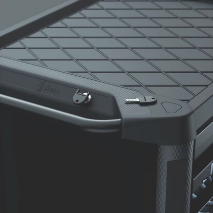 La position latérale ergonomique de la serrure facilite son utilisation et protège la clé et la serrure contre les dommages. Grâce au système de verrouillage extrêmement robuste, les outils rangés dans la servante d’atelier sont protégés de manière sûre contre tout accès non autorisé. Le verrouillage centralisé est assuré par une serrure à barillet. Deux clés pliantes sont fournies.