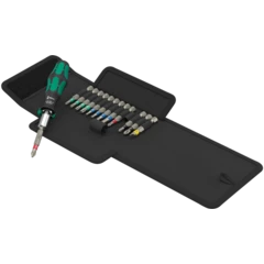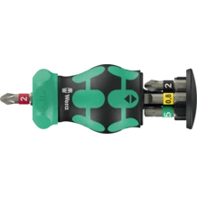 Petit manche avec admission d'embout extrêmement courte pour les endroits difficiles d'accès. Le cliquet à fine denture intégré dans le manche permet de travailler rapidement. L'inversion du sens de vissage est intuitive : si on tourne la bague vers la droite, le vissage s'effectue vers la droite. Si on tourne la bague vers la gauche, le vissage s'effectue vers la gauche. Le mécanisme de cliquet peut être désactivé en position 0 pour les travaux de précision. Avec 6 embouts BiTorsion pour une longévité accrue, extra-rigides, à usage universel. Avec repéreur d'outils Take it easy : code couleur et indication de la taille pour trouver facilement l'embout nécessaire. Le puissant aimant permanent dans l'admission d'embout permet un positionnement sûr de l'embout. Le manche bicomposant Kraftform, qui combine astucieusement les zones dures et tendres, permet une prise en main sûre et un travail précis.